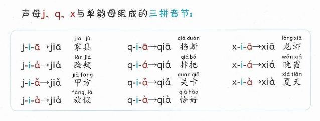 j q x与单韵母组成的三拼音节