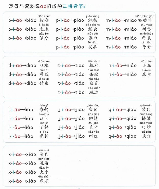 声母与复韵母ao组成的三拼音节