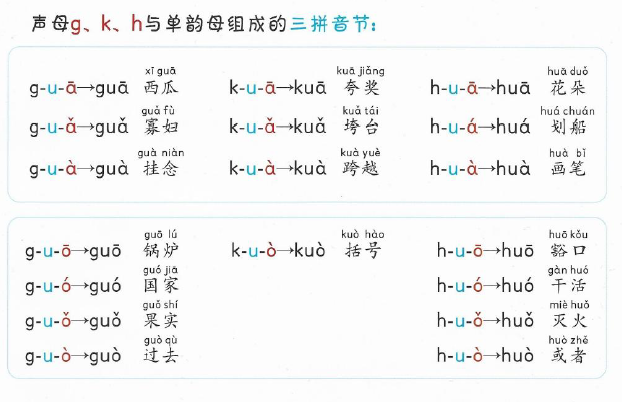 g k h与单韵母组成的三拼音节