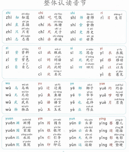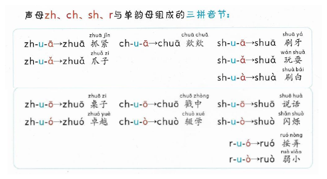 zh ch sh r与单韵母组成的三拼音节