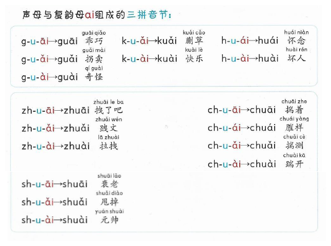声母与复韵母ai组成的三拼音节