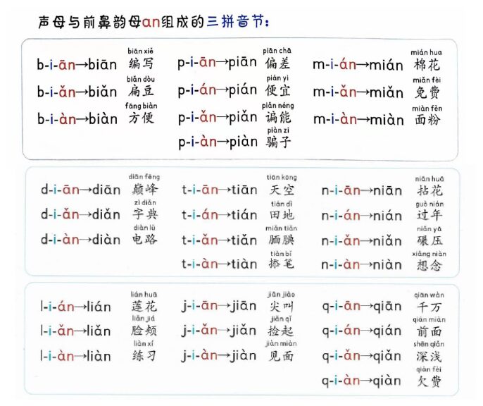 声母与前鼻音韵母an组成的三拼音节