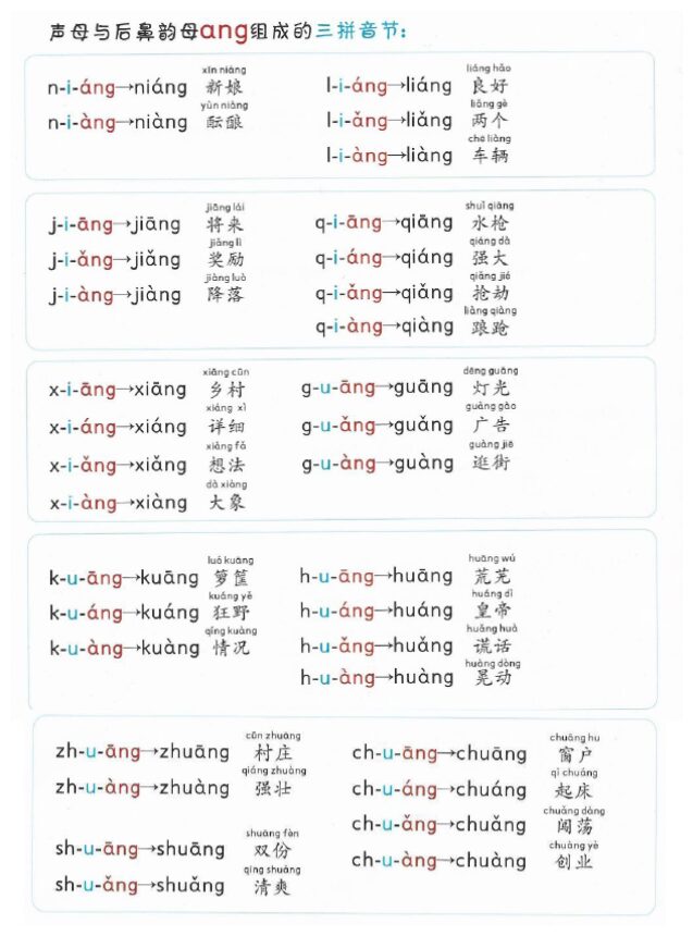 声母与后鼻音韵母ang组成的三拼音节